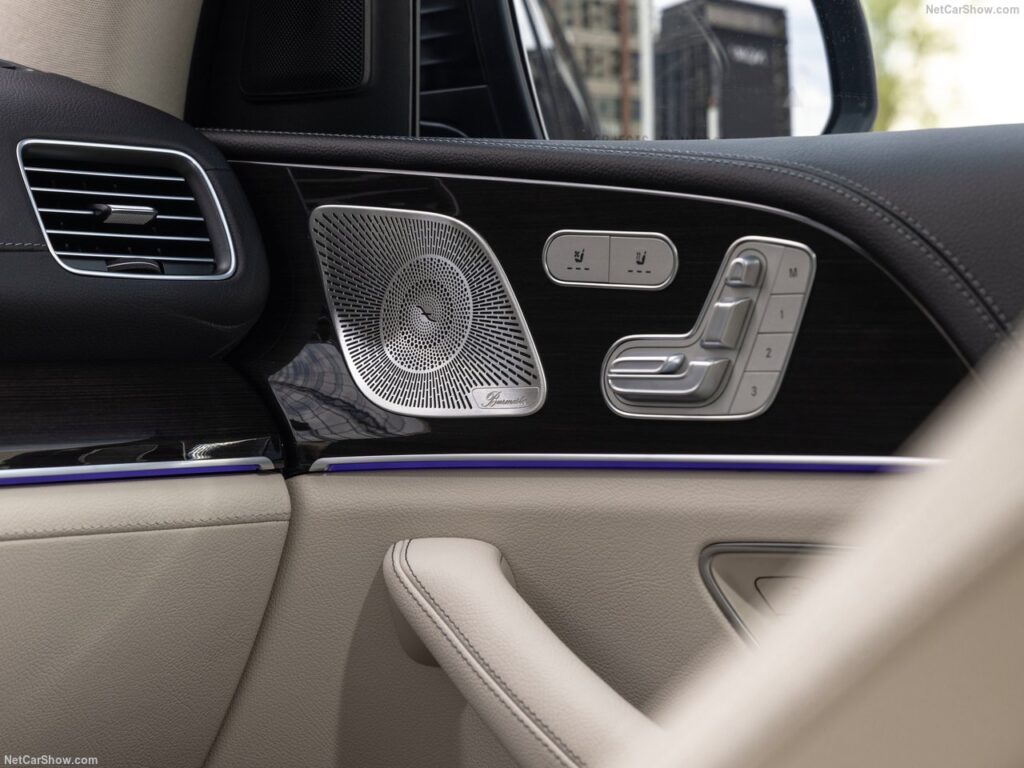 سیستم صوتی ممتاز Burmester® سیستم صدای فراگیر که اکنون همچنین دارای تنظیمات صدای شخصی و همچنین تجربه صدای فراگیر Dolby Atmos است. مرسدس بنز با سرویس “موسیقی آنلاین” بسیاری از ارائه دهندگان پخش موسیقی را به طور جامع در سیستم اطلاعات سرگرمی MBUX ادغام کرده است. 13 بلندگو، 13 کانال تقویت کننده مجزا و خروجی سیستم 590 وات از دیگر ویژگی های سیستم صدای فراگیر Burmester® هستند.